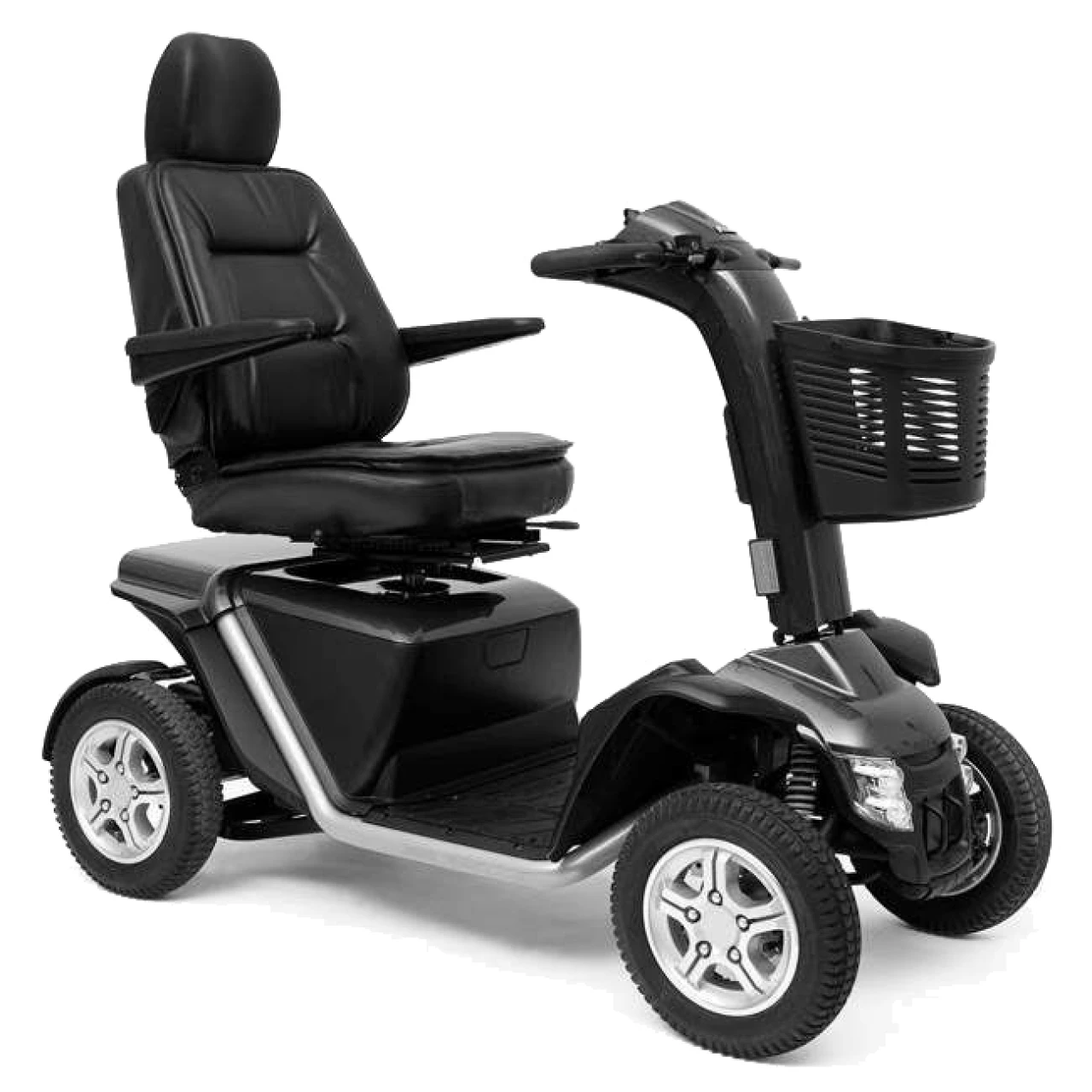 Velký stabilní čtyřkolový elektro skútr Pride Royal 20 patří mezi luxusní elektrické vozíky s vysokým výkonem. Doporučit ho můžeme i těm nejnáročnějším klientům. Právě vysoký výkon v kombinaci s velkými litými koly a sportovním odpružením umožňují využít skútr i v terénu mimo zpevněné cesty. Tlumiče mají nastavitelnou tuhost. Dle svých potřeb si však uživatel může nastavit také pohodlné sedadlo a sloupek řízení. Na řídícím panelu naleznete regulátor rychlosti, klakson, osvětlení, výstražná a směrová světla a ukazatel udávající stav baterií.