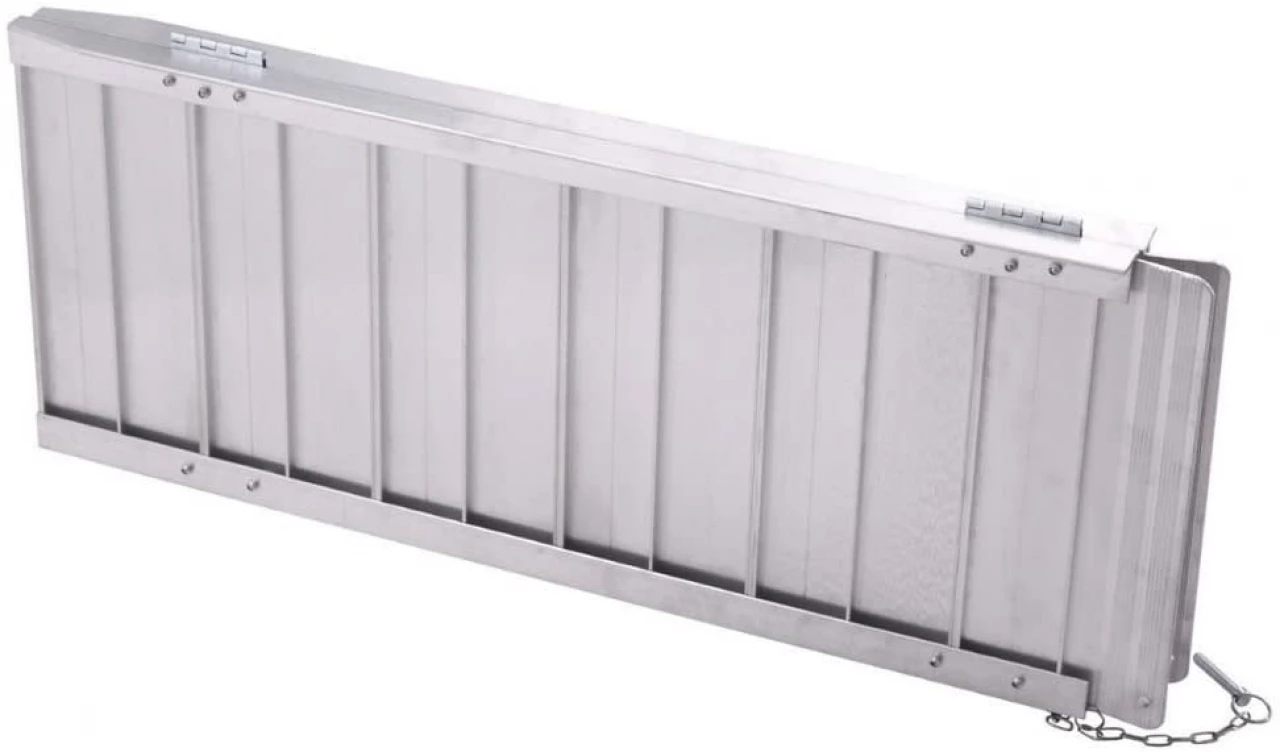 Skládací hliníkový nájezd je vybaven rukojetí pro snadnou manipulaci a protiskluzovým drážkovaným povrchem pro větší bezpečnost. I přes svou nízkou váhu má vysokou nosnost. Díky tomu ho lze využívat jak pro mechanické invalidní vozíky, tak pro elektrické invalidní vozíky a skútry pro seniory. Nájezd lze jednoduše složit a snadno se s ním manipuluje. Šroubení je vyrobeno z nerezové oceli.