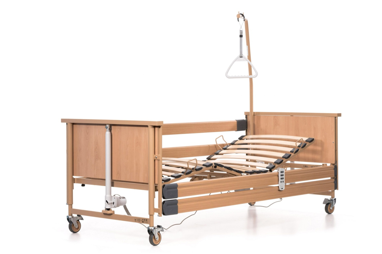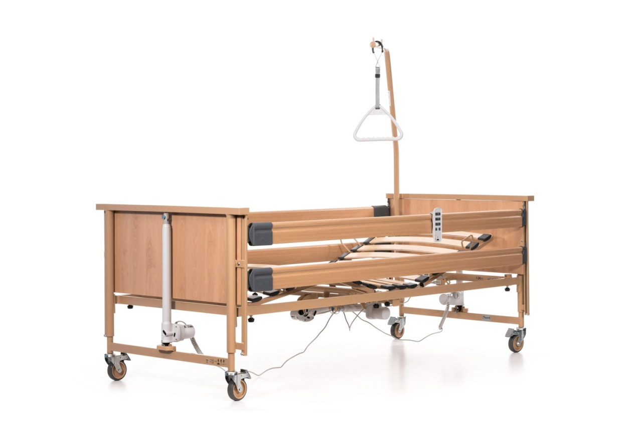 Díky elegantnímu dekoru dřeva se postel harmonicky začlení do domácnosti, ale je stejně vhodná i pro nemocnice a domovy pro seniory. Postel je vybavena bezpečnostními postranicemi, které lze posunout do potřebné polohy a transportními kolečky s brzdami pro snadnou manipulaci. Postel Burmeier je navržena s ohledem na potřeby náročnějších klientů a poskytuje ideální kombinaci funkčnosti, estetiky a bezpečí. Díky svým vlastnostem je perfektním řešením pro zajištění maximální péče a pohodlí.