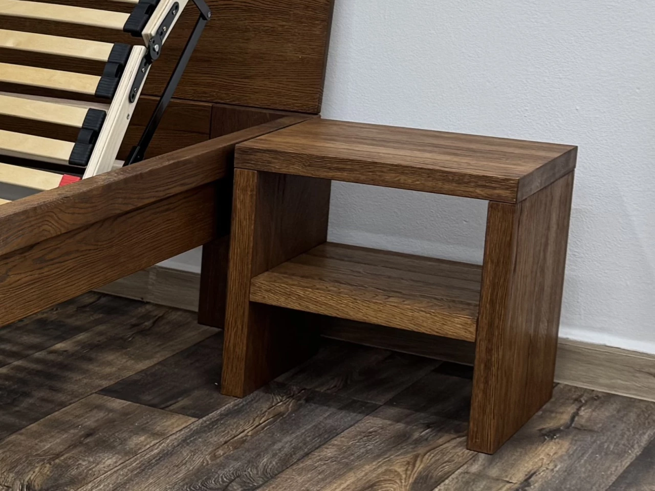 Noční stolek Smaragd z masivního dubového dřeva je elegantním a praktickým doplňkem k posteli Smaragd. Díky jednoduchému tvarovému řešení a kvalitnímu masivu je stabilní, nadčasový a má dlouhou životnost.