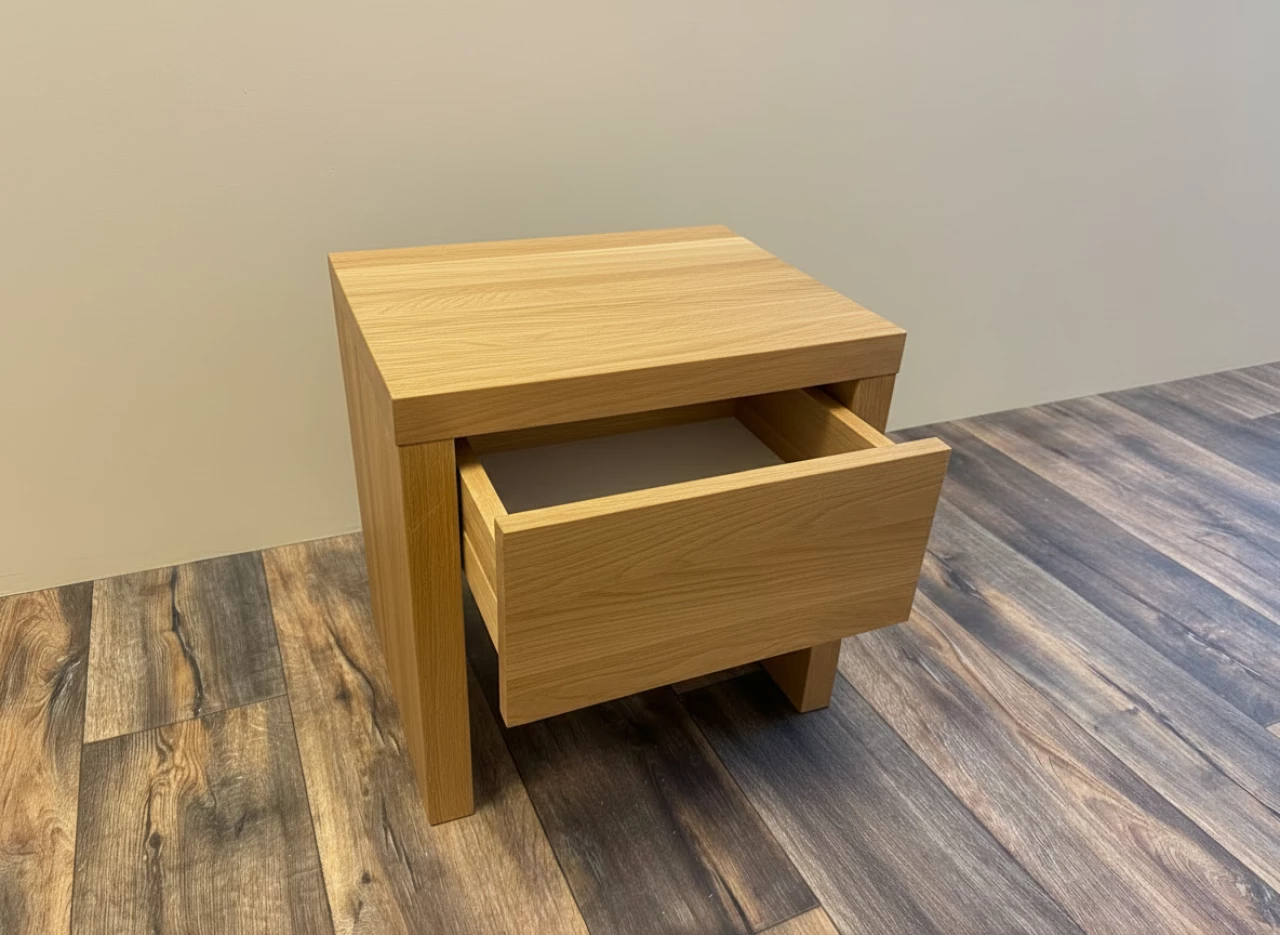 Stolek je vybaven jednou zásuvkou s plnovýsuvem a tlumeným dovíráním, která umožňuje tiché a komfortní používání. Provedení bez police zachovává čistý a nerušivý vzhled.
