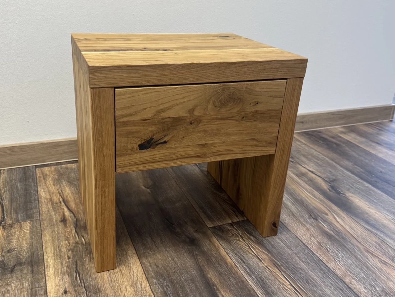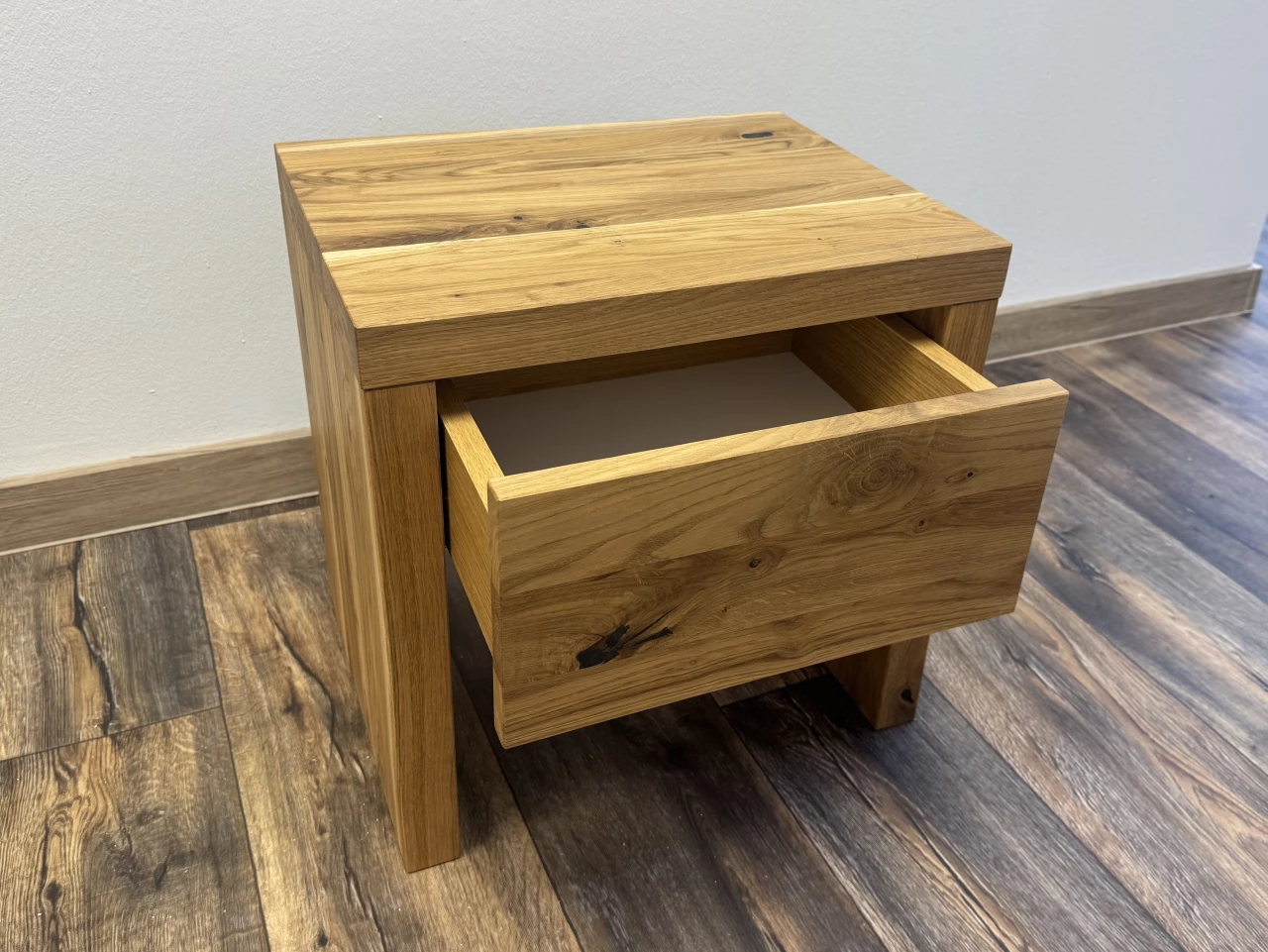Noční stolek Ametyst z masivního dubového dřeva je navržen jako funkční a designově sladěný doplněk k posteli Ametyst. Jednoduché rustikální provedení a přirozený vzhled masivu zajišťují nadčasový charakter a snadné začlenění do ložnice.